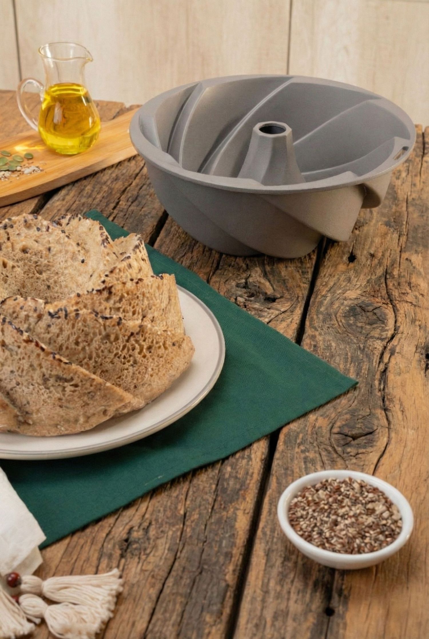 El Savarín Twister 24 cm cocina más rápido gracias a su orificio de circulación, que distribuye el aire caliente de forma pareja.